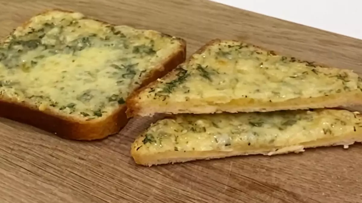 На ломтик хлеба намазывают масло с чесноком и зеленью: YouTube/ Онлайн Меню Подготовьте нарезанный или тостовый хлеб. Смажьте кусочки подготовленной масляно-сырной массой с чесноком с двух сторон. Сыр натрите на мелкой терке и посыпьте им хлеб сверху (с одной стороны).