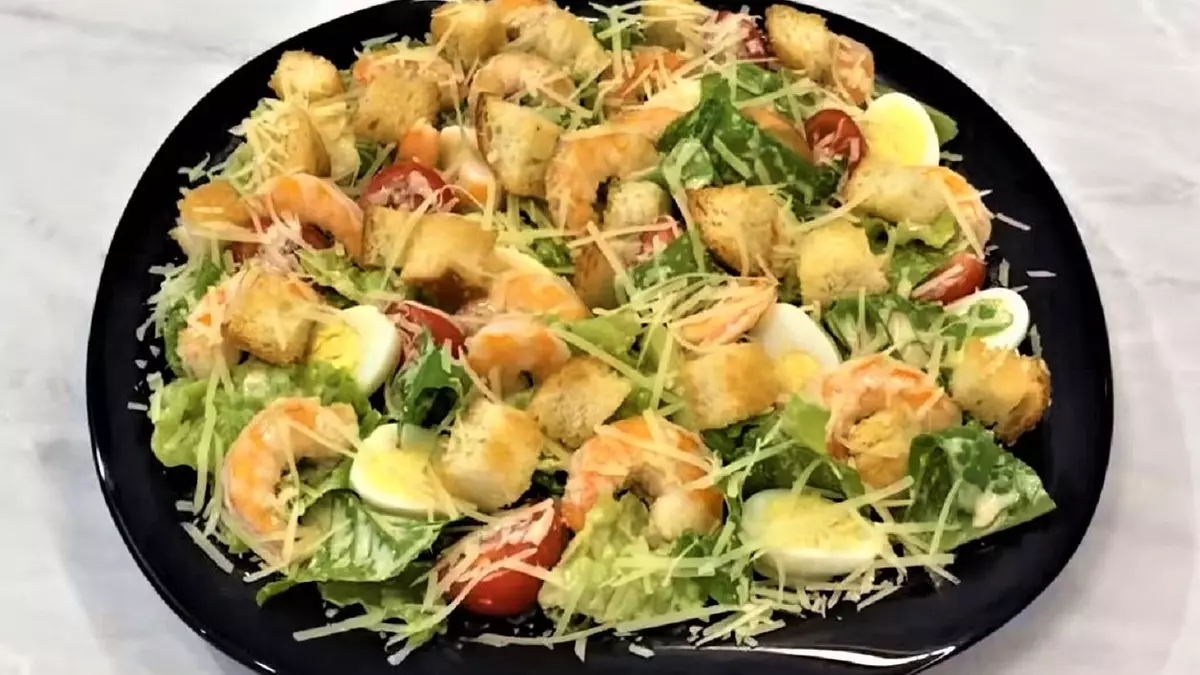 Салат «Цезарь» с креветками: пошаговый рецепт