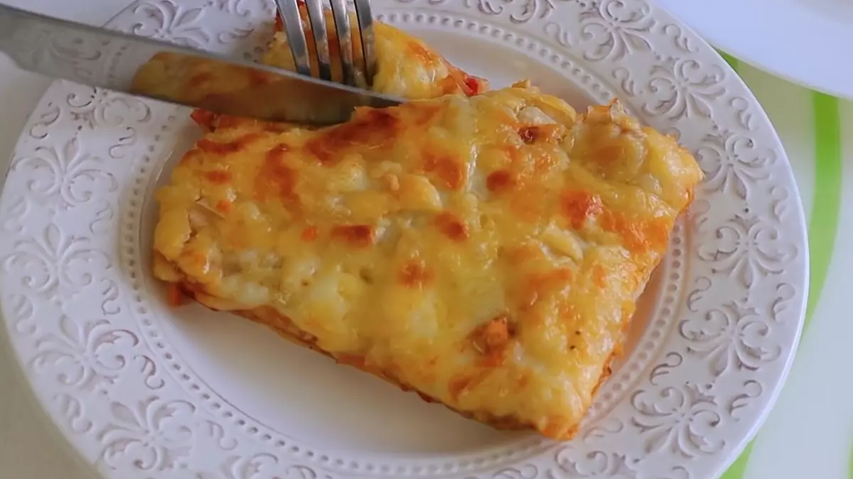 Готовую лазанью режут на порционные кусочки: YouTube/ Вика-Простые Рецепты Разогрейте духовку до 180 °C. Выпекайте 25–30 минут до румяной сырной корочки. Готовой лазанье дайте несколько минут постоять, затем разрежьте на порционные кусочки и подавайте к столу горячей.