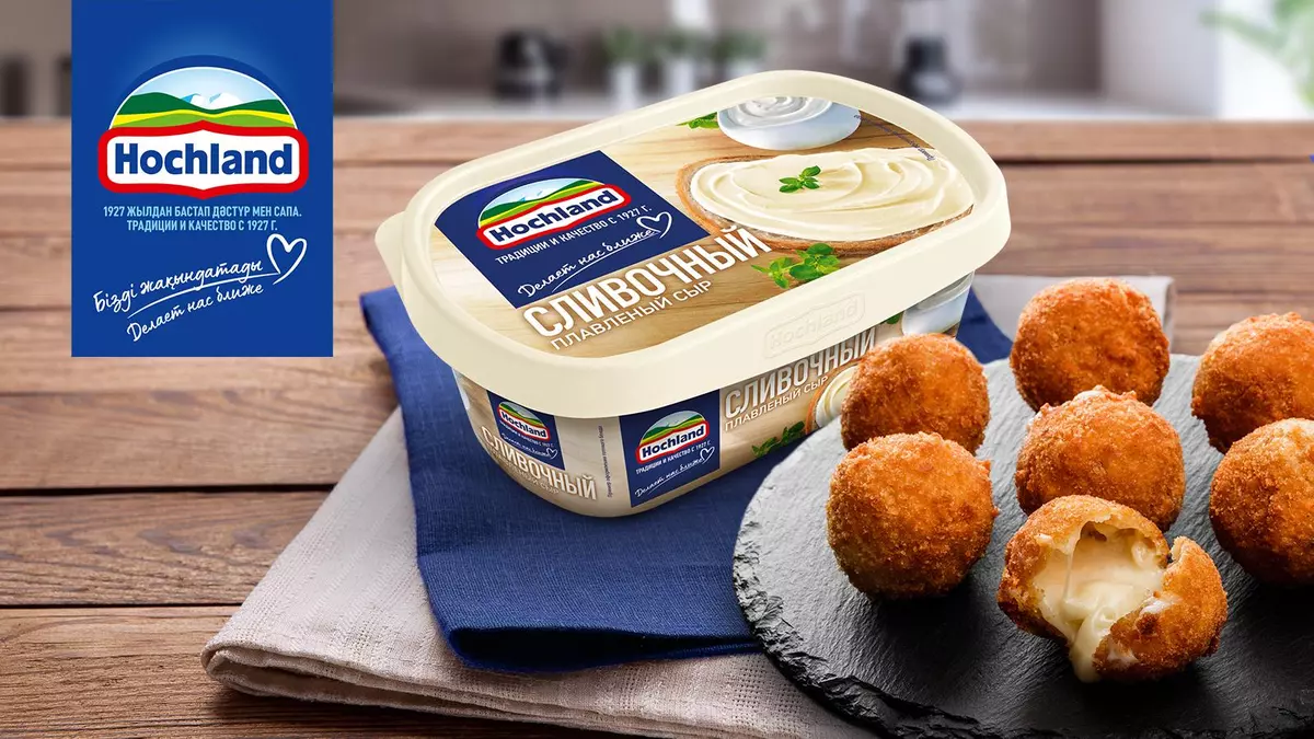 Взбейте белки и перемешайте их с Плавленым сыром Hochland "Сливочный". Мы рекомендуем использовать именно этот сыр, потому что он изготавливается из классического натурального сыра и обладает нежным вкусом. Крокеты получатся тягучими внутри, а начинка не будет сильно растекаться.