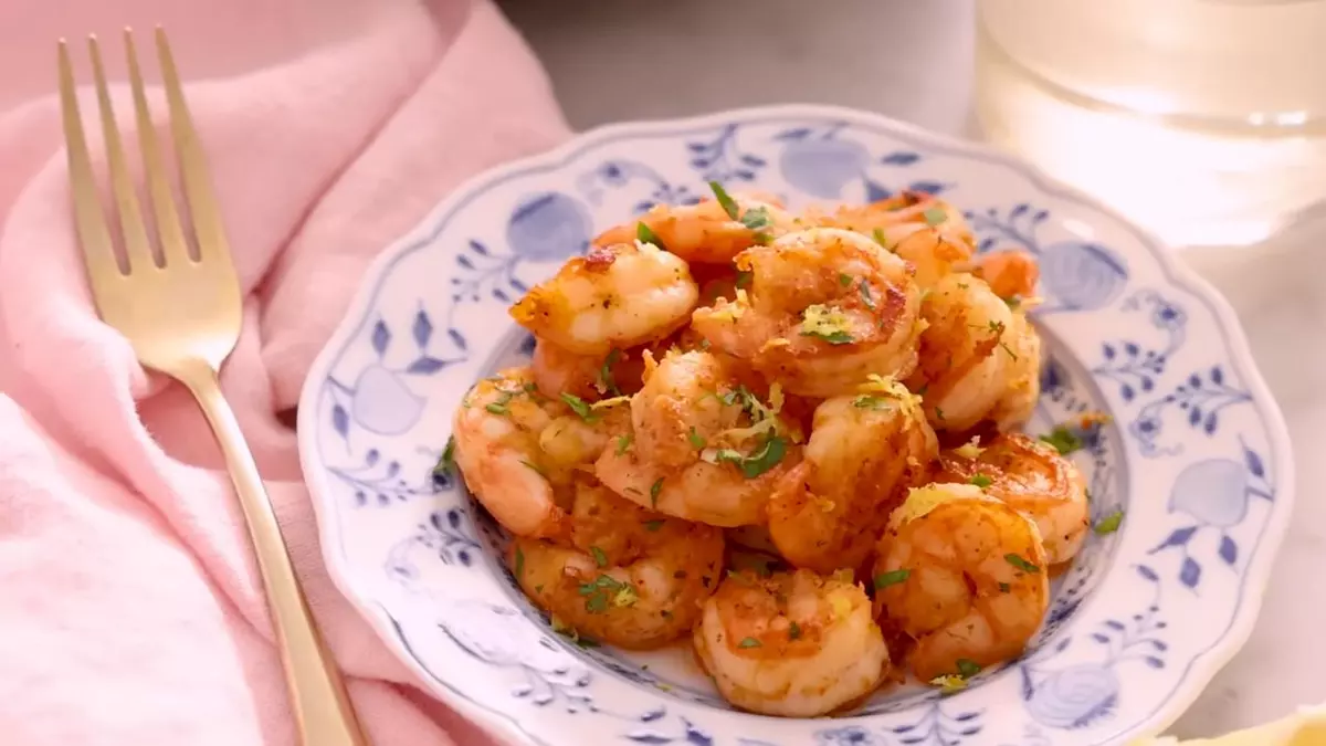 Перед подачей креветок посыпают свежей петрушкой: YouTube/ Preppy Kitchen Снимите креветок с огня. Добавьте в сковороду цедру и сок лимона. Встряхните сковороду, деликатно перемешайте креветок с цитрусовым соком. Петрушку измельчите ножом и украсьте блюдо перед подачей.