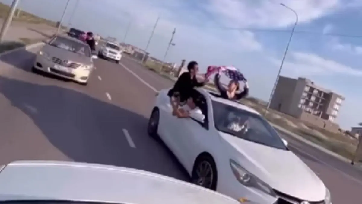 Пассажиры нескольких легковых автомобилей высовывались из люков на крыше на полном ходу в Актау - нарушителей наказали, передает NUR.KZ со ссылкой на УП города.