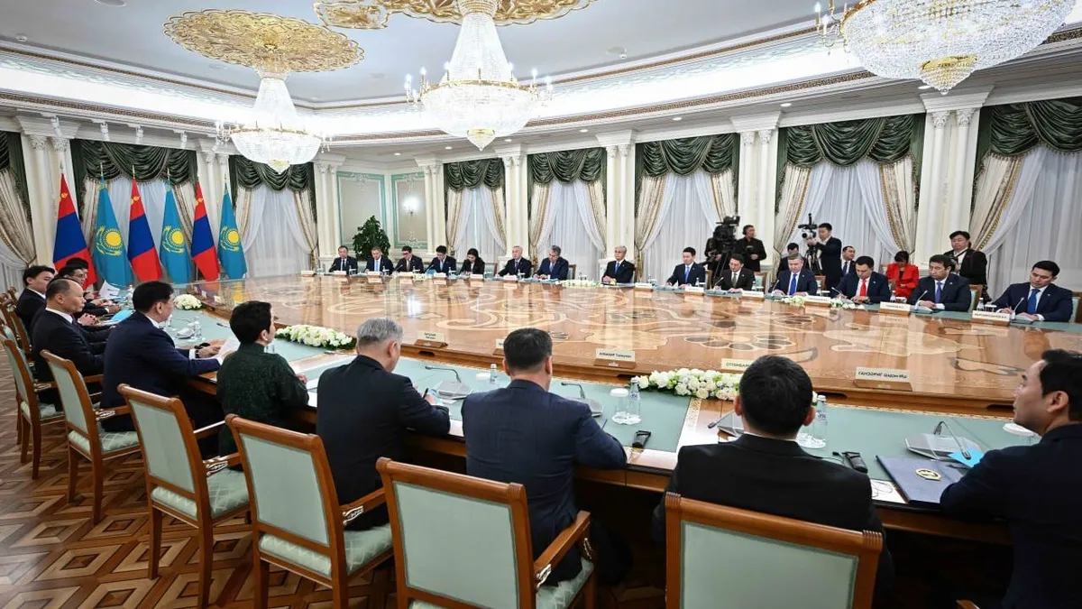 Наши экономические связи имеют огромный потенциал для динамичного развития. В ходе вашего государственного визита в Монголию в 2024 году была принята "Дорожная карта" по активизации торгово-экономического сотрудничества между Монголией и Казахстаном на 2025-2027 годы. Поставлена задача довести товарооборот до 500 млн долларов", - сказал он.