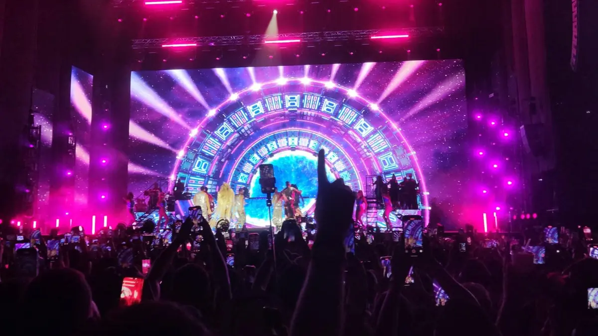 После разогрева, в ходе которого выступили диджеи и исполнитель Sadraddin, зрителей "разогревала" пустая сцена и несколько человек из технической команды, которые периодически появлялись на арене. Не выдержав ожидания, зрители стали скандировать имя певицы.