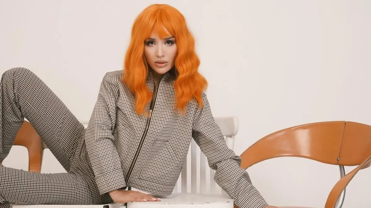 Огненно-рыжие волнистые волосы и брючный костюм в мелкую клетку, состоящий из короткой курточки на молнии и штанов, а также макияж с акцентом на глаза - новый образ Элизат Бериковой получился ярким и неожиданным.