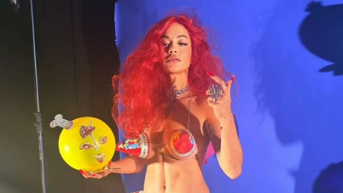 Рита Ора снялась для журнала в откровенном топе из праздничных колпаков