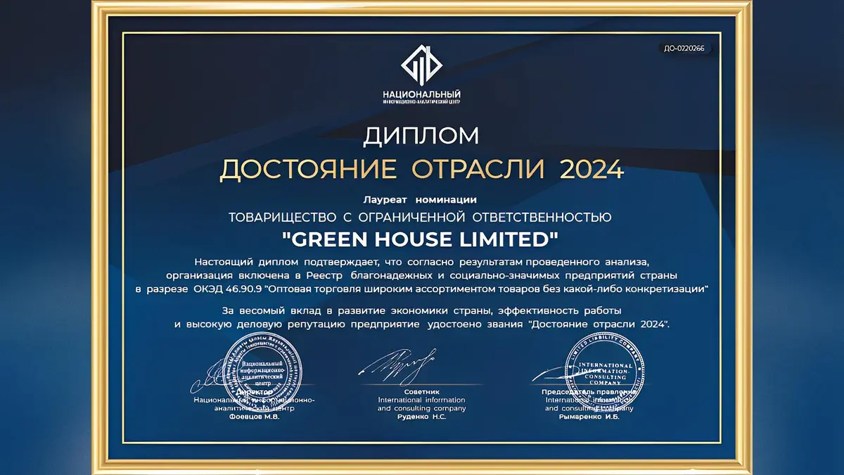 Такой подход подчеркивает: быть лидером рынка — значит не только эффективно работать, но и вносить вклад в благополучие общества. Green House Limited — это больше, чем просто дистрибьютор. Это мощная инфраструктура, современный подход к ведению бизнеса и команда профессионалов, объединенных общей целью: обеспечивать рынок качественной продукцией и оставаться надежной опорой для партнеров, клиентов и потребителей.