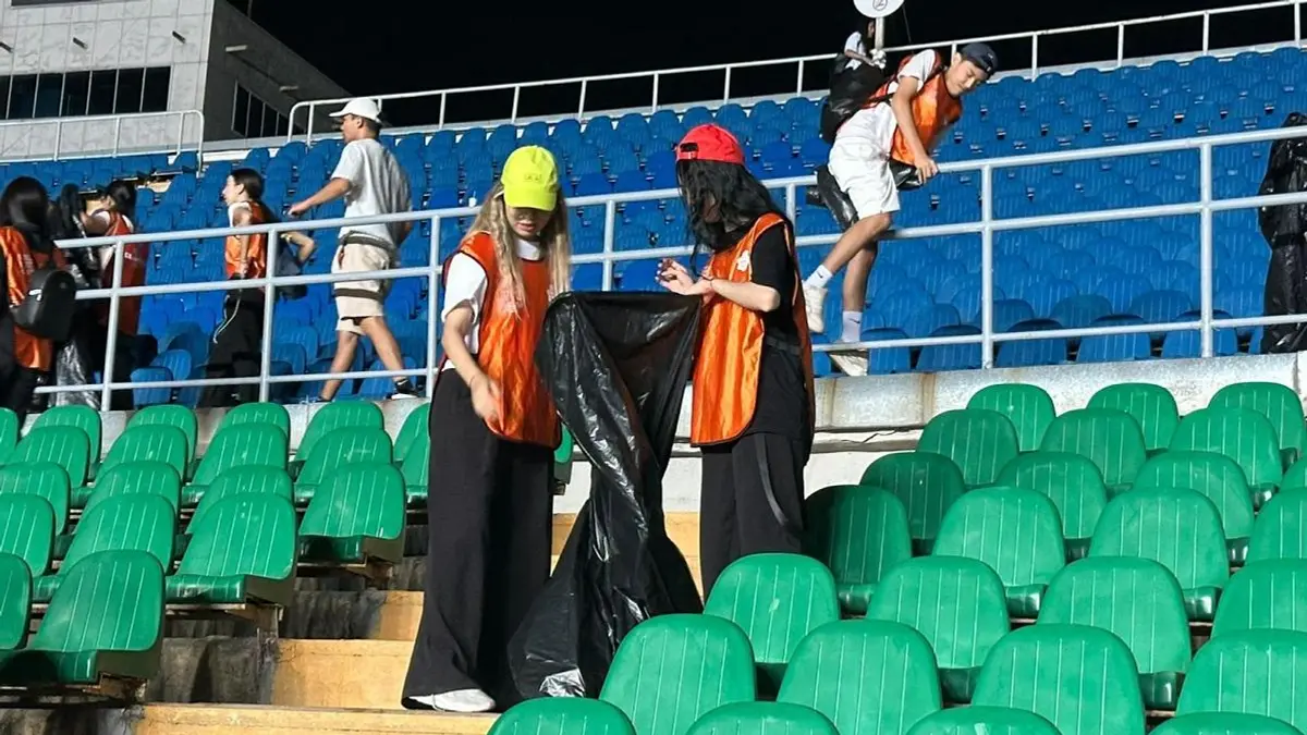 После концерта Дженнифер Лопес в Алматы: волонтеры и молодежь убрали Центральный стадион в рамках акции "Таза Қазақстан"