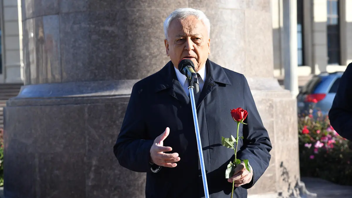 Возложение цветов к памятнику Жумекену Нажимеденову в Атырау