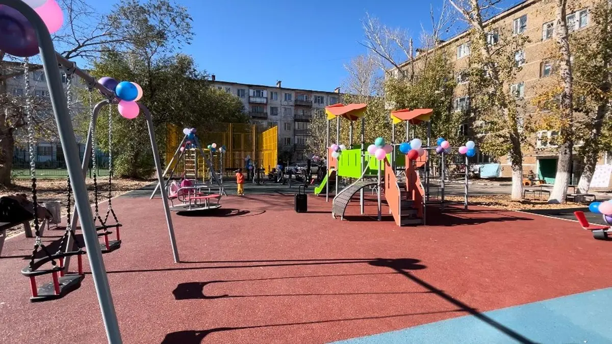 Обновленный двор – подарок жителям Ерейментау. Во дворе дома №97 по улице Богенбай батыра в городе Ерейментау торжественно открыли новую зону отдыха и детскую площадку, построенную в рамках благоустройства.