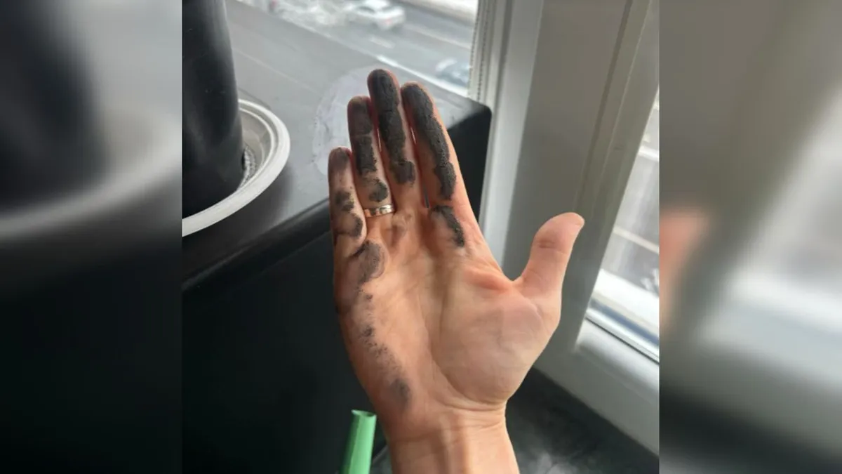 Пользователь соцсети Threads Сергей Кирин уехал на 10 дней, оставив окно на сложном открывании. Вернувшись домой, он обнаружил грязный подоконник и столешницу поблизости. На видео, которым поделился алматинец, он запечатлел, как проводит ладонью по поверхности и обнаруживает, что рука стала буквально черной.