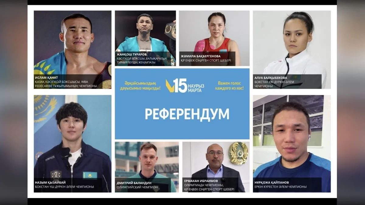 В преддверии референдума по обновлению Конституции Республики Казахстан известные спортсмены страны выразили свою поддержку и призвали граждан активно участвовать в голосовании, сообщили в акимате города Алматы.