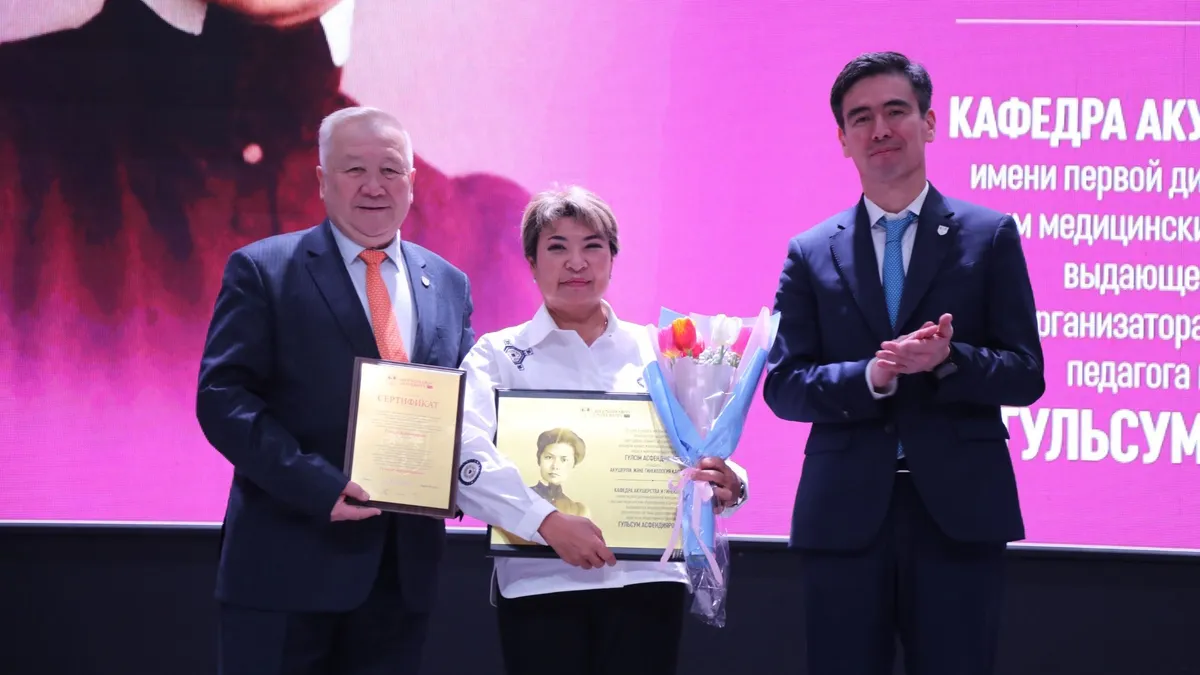 В преддверии Международного женского дня кафедре акушерства и гинекологии Казахского национального медицинского университета имени С. Д. Асфендиярова присвоено имя Гульсум Асфендияровой. Соответствующее решение было принято Ученым советом КазНМУ 26 февраля 2026 года. Символично, что это значимое событие было реализовано накануне 8 Марта, в ходе торжественного праздничного концерта, сообщает пресс-служба КазНМУ.