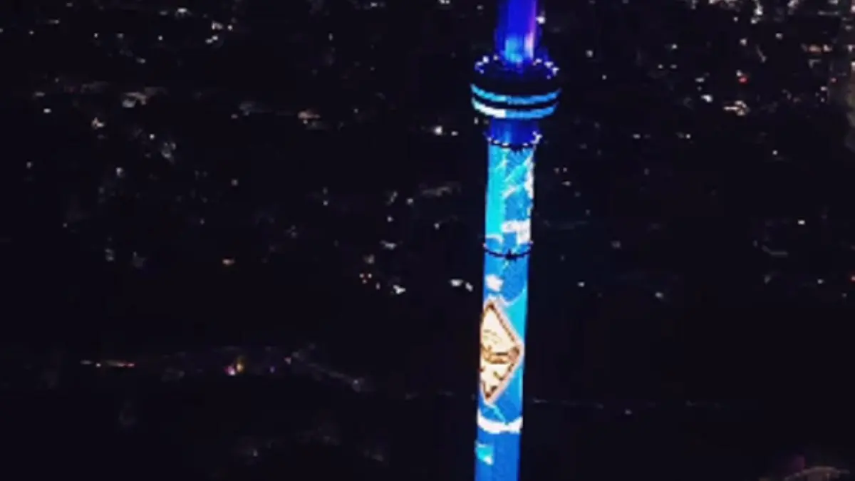 На экранах телебашни были видны логотипы алматинского футбольного клуба, а также Лиги чемпионов УЕФА.