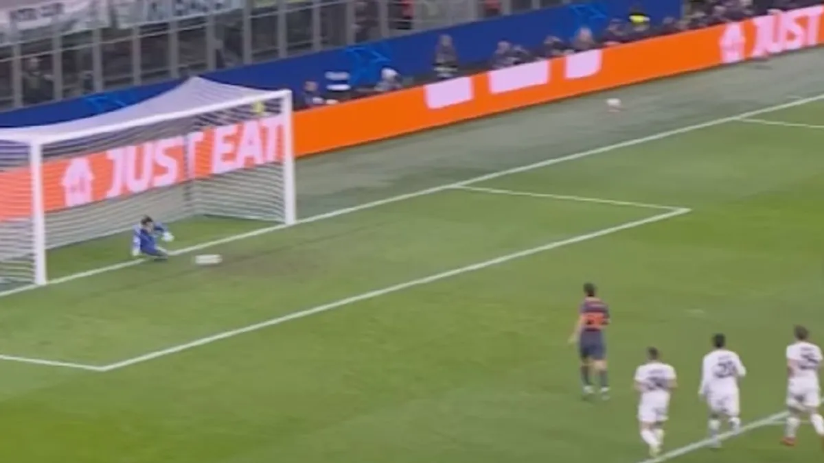 Вратарь алматинцев в матче с миланским клубом отразил удар Лаутаро Мартинеса.