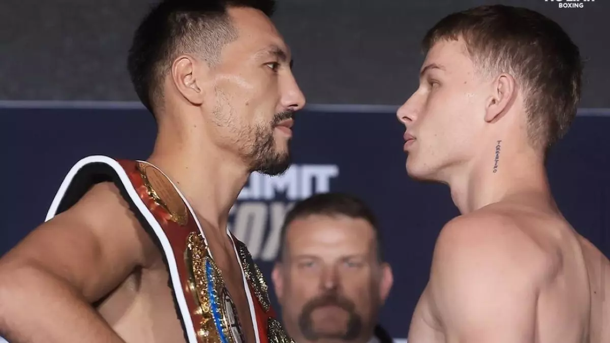 Казахстанский профессиональный боксер, чемпион по версиям WBO и IBF в среднем весе Жанибек Алимханулы прошел процедуру взвешивания и дуэль взглядов перед следующим боем, передает NUR.KZ.