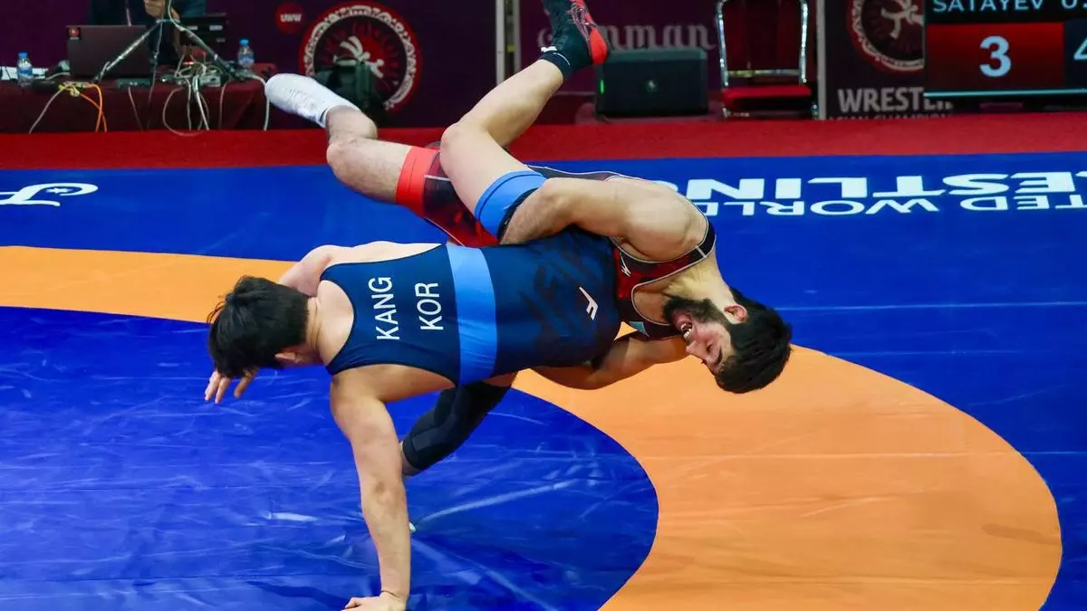 Соперником казахстанского борца Омара Сатаева по финальной схватке в весовой категории до 82 килограммов был иранец Мохаммад Азиз Нагуси.