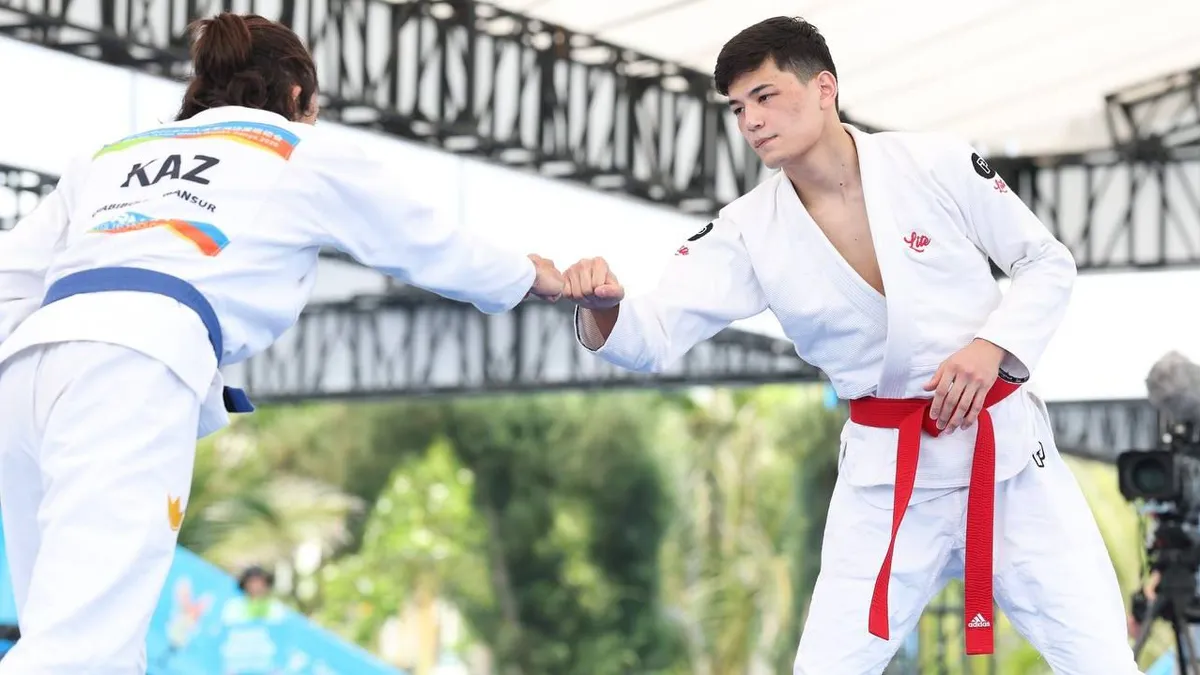 В очередной соревновательный день пляжной Азиады в борьбу за медали вступили представители джиу-джитсу. До медальной схватки соревнований дошли два казахстанских спортсмена. За бронзовую награду в весовой категории до 62 килограммов сошлись Батыр Тенизбай и Мансур Хабибулла. Схватка завершилась победой Тенизбая со счетом 2:0.