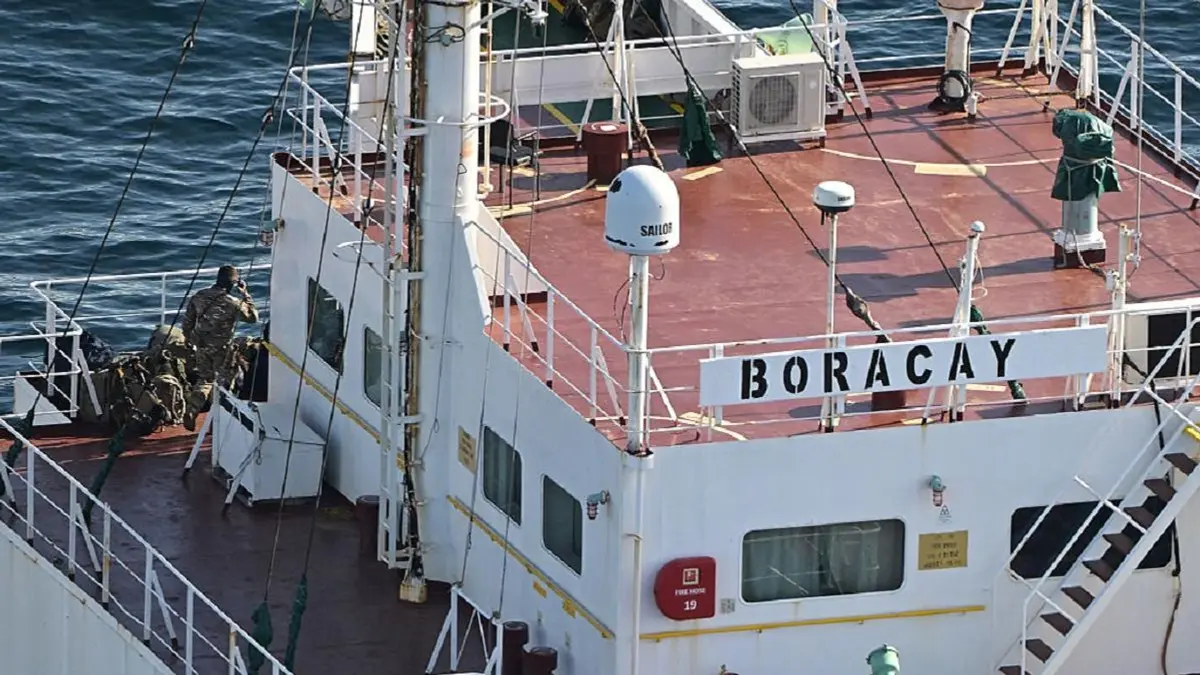 Boracay, который также носил названия Pushpa и Kiwala, в настоящее время зарегистрирован в Бенине, но, будучи частью так называемого теневого флота России, за последние годы несколько раз менял название и флаг.