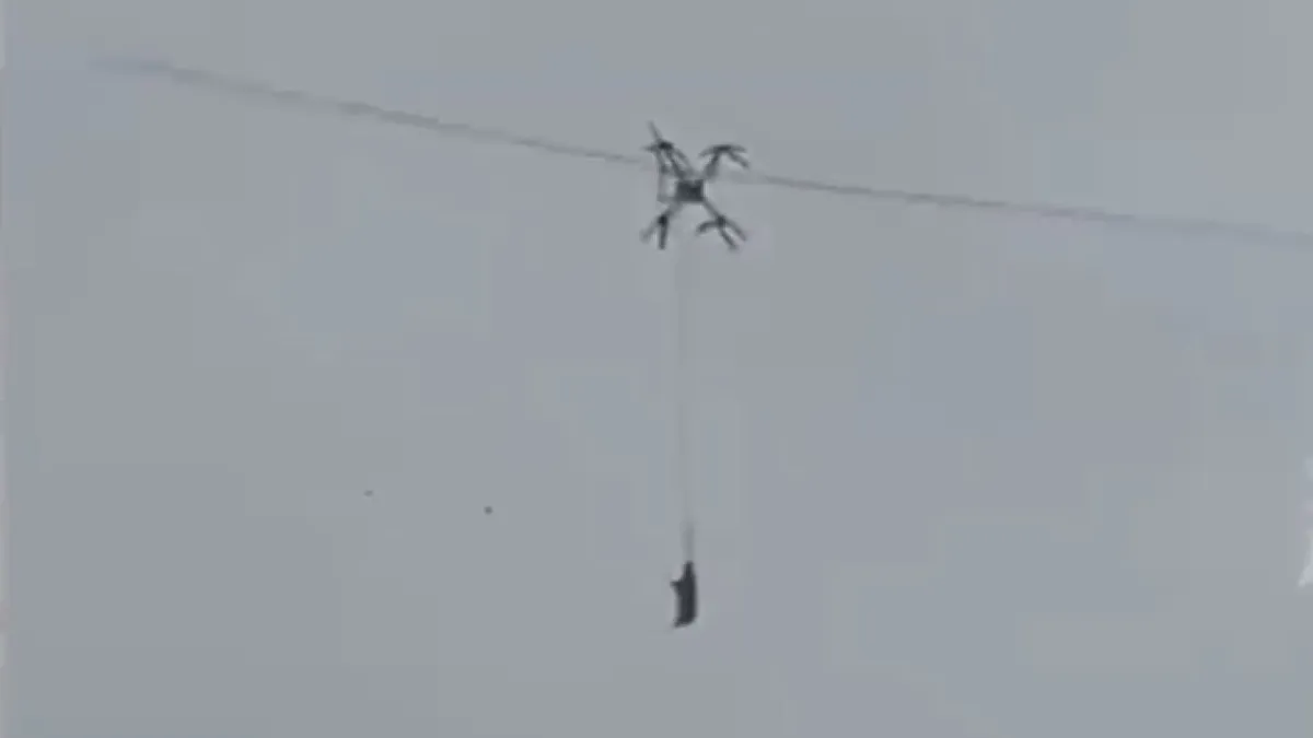 Tamní farmář se koncem ledna rozhodl použít dron k přepravě zvířete přes hornatou oblast, ale dron se zapletl do elektrického vedení.