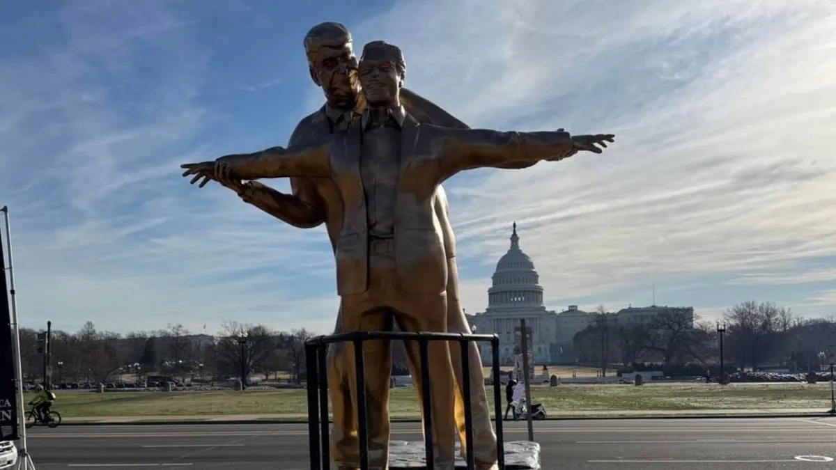 В столице США, прямо напротив здания Капитолия, неизвестные авторы установили сатирическую инсталляцию Дональда Трампа и Джеффри Эпштейна, передает NUR.KZ со ссылкой на The Washington Post.