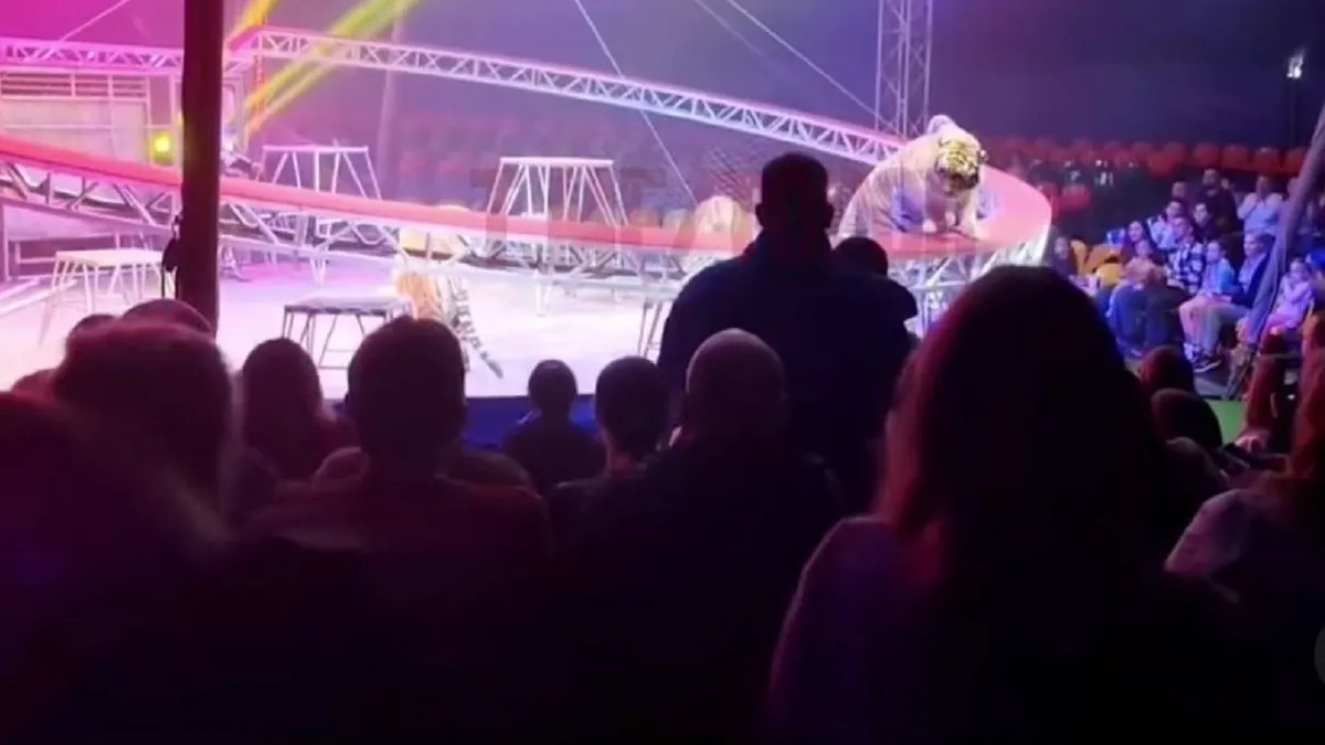 Тигр прыгнул в зрительный зал во время циркового шоу в России